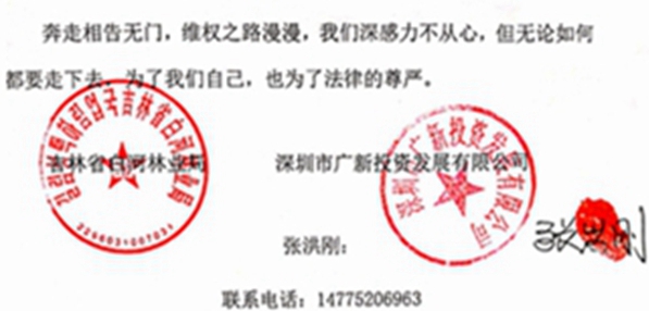 (5)我们向辽宁省监察委、大连市监察委等监察部门多次举报杨广志、史明强涉嫌贪污罪、挪用公款罪等犯罪事实;同时,我们也举报了大连市甘井子公安分局不作为、庄河市人民检察院徇私枉法、大连市中级法院枉法裁判的问题,几百封举报信已经寄出,但杳无音讯,问题至今未得到有效解决。