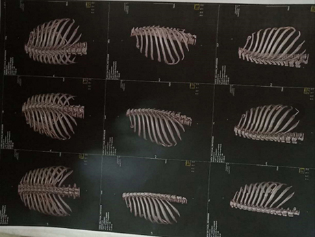 这里所提供的几张片子拍出的颈椎骨折,腰椎横突骨,脊柱骨折,左侧盆骨骨折,内骨粉质性骨折,内骨左侧3一7两处骨折胸椎骨折,报告单都没有。报告单上有50根骨折包括两处有的,只出三分之一的骨折。常州市武进人民医院涉嫌隐瞒我的伤情,进手术室开刀涉嫌隐瞒了主要骨折的片子,去要片子不给;补出院小结,补两次,颈椎骨折,腰椎骨折,胸椎骨折,内骨粉质性骨折还不肯补。