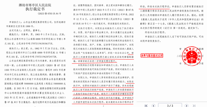 (上图为寒亭区法院2023年5月28日做出的终结本次执行裁定书)