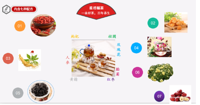 李云文教授研发的这款星禮福茶,根据药食同源原理,将人参、红枣、枸杞、黄精、桂圆、玫瑰、菊花等7种食品科学配比,经过几个月的反复论证调配,效果明显,其味道微甜,颜色清亮,老少、男女皆宜,尤其体弱多病、全身乏力、失眠多梦、四肢无力、精神萎靡、食欲欠佳、早泄阳痿、月经不调等人群饮用最佳。各种药食同源的材料按照比例严格制作,真正做到了对产品负责、对其饮用者负责!