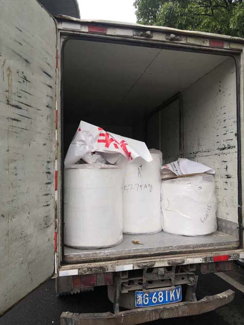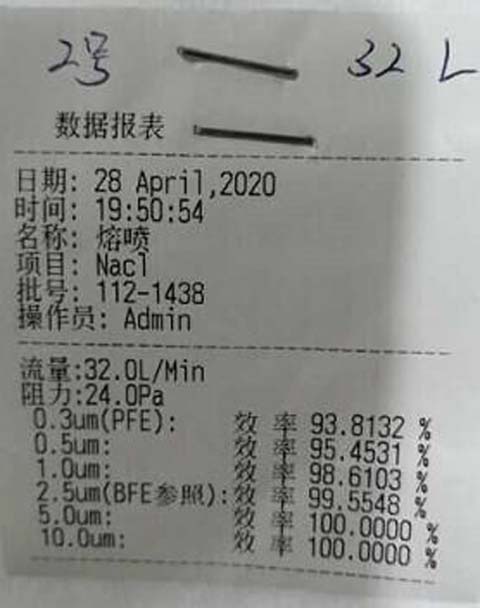 据袁晓鹏介绍,2020年4月30日常州博达纺织科技有限公司通过货拉拉将熔喷布送达义乌这家公司后,由于验收人员没有找到产品合格证及产品出厂检验报告和交款发票,遂立即于“五一”放假期间安排专人对常州博达纺织科技有限公司发过来的熔喷布进行检测,发现PFE检测达不到90标准,达不到国家民用一次性防护口罩生产要求。