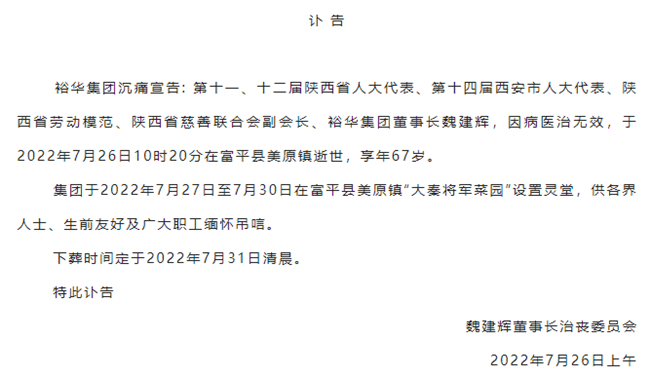 魏振业抢过话题对记者说:中国有一句古话:青出于蓝而胜于蓝。我父亲魏建辉就算会赚钱了吧?但是他老人家比起我们三兄弟来说,他也算不上什么优秀了。他去世后,裕华建设集团在2022年7月27日至7月30日在富平县美原镇“大秦将军菜园”设置灵堂,供各界人士、生前友好及广大职工缅怀吊唁。几天时间,我们就收入折合人民币4000多万元的礼物和现金。直到现在,我们家还在领我父亲魏建辉的退休工资。
