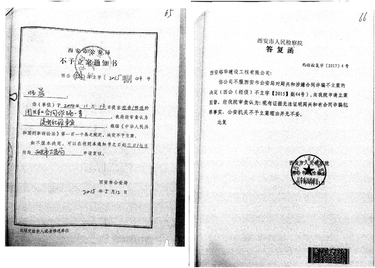 记者问:魏成业董事长,你给我们展示西安市公安局于2015年5月12日不予立案通知书,西安市检察院于2017年4月1日出具的周兴和不构成犯罪的答复函,这个算不算涉嫌黑社会保护伞呢?