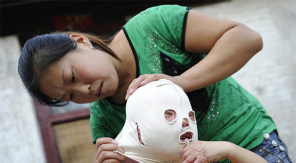 山西汾阳,每当妈妈给湘湘戴面具的时候,湘湘就和妈妈玩起了躲猫猫,因为面具的弹力令他感到难受。