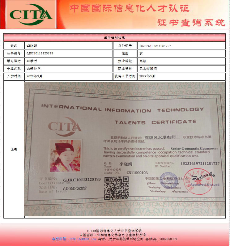李晓娟女士结合自身所学,将心理学、奇门遁甲、风水、灵气的气感, 综合运用,不但对个人情绪的调节,更是对房屋的气感与屋主的 气感如何很好融合,都有自己独到的见解,并在实际工作中帮助 很多人得到多方面的提升。古人云:三人行必有我师焉,愿秉承 师承,天地人自然和谐,提高自身,在易学领域不断探索,阴阳 互生,法于自然,更好的传承中华传统文化!