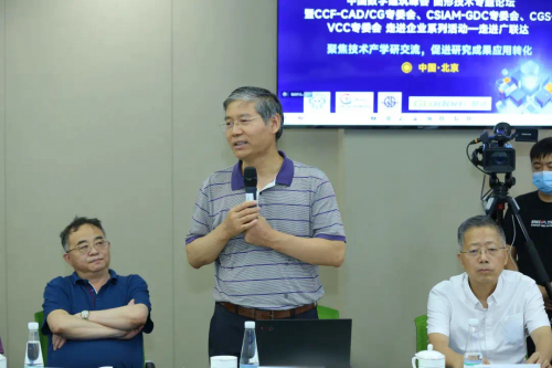 中国计算机学会 CADCG专委会主任、北京大学博雅特聘教授汪国平教授致开幕词辞,对各位老师的到来表示热烈欢迎,并感谢广联达承办了此次交流会。汪国平教授表示,面向国家战略布局与需求,倡导业界与学界的深度对接,尤其在国内外当前形势下对关键技术需求、政策需求、人才需求方面,双方有着强烈的合作探索的愿望,这次专委会走进广联达,正是为了加快图形领域的学术创新到产业落地的转化,实现产学研的有效对接。