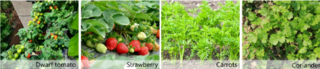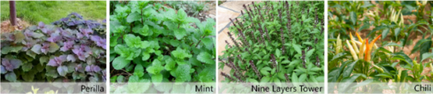 蔬菜品种:薄荷、紫苏、矮生番茄、草莓、金针菜、罗勒(九层塔)、 芫荽、菜枸杞、番薯、淮山、丝瓜、南瓜、黄秋葵等。