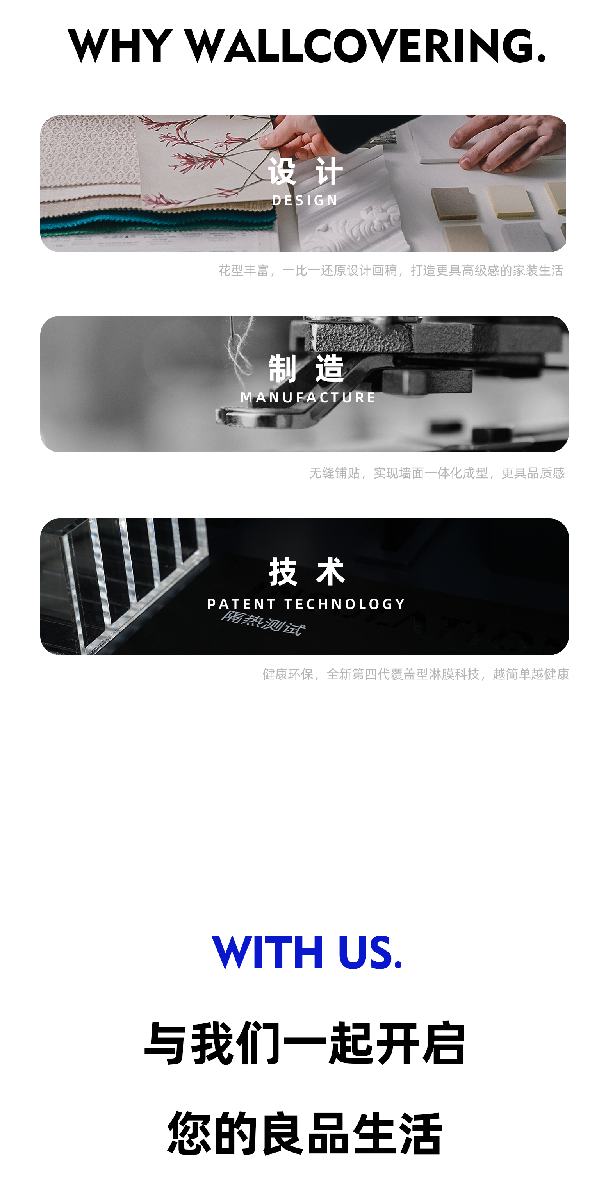 品质方面:背靠“中国墙布第一股联翔股份”(股票代码603272),「良品颂」产品品质稳定、售后无忧;传承领绣淋膜专利技术(201910715235.1)与物理熨烫工艺结合的第四代覆盖型淋膜墙布,「良品颂」将健康环保软装产品带到千家万户,和广大消费者一起迎接更健康的生活方式。