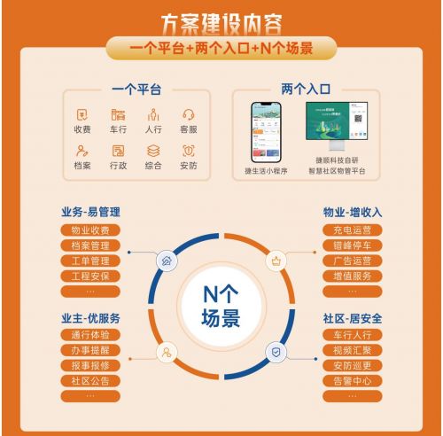 今年,依托自身在社区领域三十年的服务经验与实践,捷顺科技再次围绕物业的“管理+服务”方面诉求 ,升级打造社区生活场景+管理业务流程+物业综合运营的服务平台,以1平台+2入口+8大应用模块的建设方案,助力提升业主居住生活体验、物业高效人性化服务质量,实现社区的全面数字化升级。