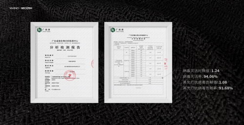 耐酷时团队为雅琪诺抗菌窗帘墙布开发了两项独有技术,粒子极限悬浮分散技术及无机复合技术,将耐酷时粒子牢牢地负载于雅琪诺抗菌窗帘墙布表面,即使遇水也不团聚,不易脱落,保证其能效的长期性。