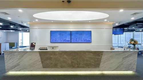 在接待大堂,MFG为每一家入驻企业配备了液晶高清显示屏,行政管家协助企业进行商务接待,尽显企业品牌格调。