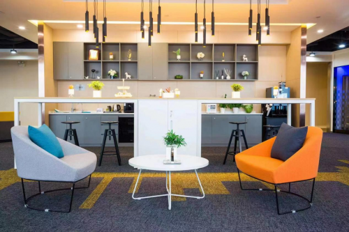 在休息区,MFG还为入驻企业的员工提供不限量的茶饮,并不定期举办惊喜茶点派对和福利派送,更为年轻、活力的新时代企业带来更多办公幸福感。