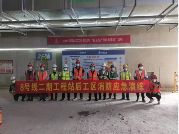 消防演练筑牢安全防线。项目部在施工现场组织开展应急消防救援演练,以现场发生不明原因火情为背景展开,发挥了项目部消防应急救援演练的实效性以及各应急小组协调配合性,增强了应对各类事故的处置能力,提升了应对突发事故救援的信心和救援意识。