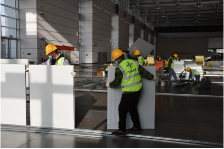凛冬虽至,但青年志愿者们的心中却热血涌动。天津国际会展中心方舱医院总面积1888平方米,共设病床1250张。本次改造内容包括:隔档安装、场馆清扫等工序。大空间改建方舱医院,看似难度不大,施工内容不多,但工期要求紧、材料急,天津各个地区都在建方舱医院,市内能用的材料和工人早就被一扫而空,只能从附近地区调配,对各方面协调配合要求更高,摆在突击队面前的是重重困难。“我打了加强针,现场缺技术员,我报名!”1998年出生的党员刘建元踊跃报名,他是项目团队中最年轻的一位。项目土建“哥哥”们也不甘示弱,被小年轻高涨的勇气鼓舞,纷纷报名。“没啥犹豫的,我去!现场干活没有电工怎么能行?”电工老刘主动请缨。电工老刘经验丰富,除了电工,土建施工样样拿手,号召力也强。在他的带领下,工人们热情高涨,不到半个小时,老刘所在班组就有40余人报名。在大部队紧急集结奔赴一线的同时,有着9年党龄的退伍老兵景灿,告别即将临产的妻子,在获得家人的理解后毅然加入援建队,主动担起了后勤保障工作。“部队教会我军人就在要祖国人民需要的时候召即来,来能战,战必胜,我时常想怎样才能让自己保持退伍不褪色?”抗疫的号角吹响的那一刻她心里有了答案,即使脱去了军装,他依然是祖国和人民的战士!初到现场,没有仓库、生活休息办公区,现场行李物资、设备器械无处堆放,天津地铁11号线延伸线安全总监王朋内外协调,人手不够,就跟工人一起搬运整理码放好。现场发放物资时,由于需求急、领用次数多、数量大,他边维持秩序边登记,确保现场所有人员基本生活物资、劳保物资得到保障。