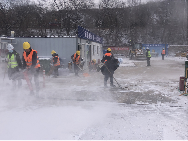 11月29日晚,大连市一场大雪飘然而至,给施工现场安全生产和施工组织带来极大影响,中交一公局第八工程有限公司大连地铁项目部与班组纷纷行动起来,积极投入到除冰雪、保安全、保施工的行动中。30日早,前东明挖区间施工现场大雪纷飞,银装素裹。施工现场目前已进入盾构施工关键阶段,为保安全、保工期,项目部员工及班组一同开展除雪行动,大家明确分工,通过清扫、铲除、撒融雪剂、蒲草垫、风机吹扫等措施,耗时3小时清除了施工现场的积雪和地面冰冻,消除了人员车辆通行、吊车站位等隐患,有效预防了安全生产的不利因素,为后续盾构推进的安全生产与施工进度提供有利保障。(供稿/陶炯金)