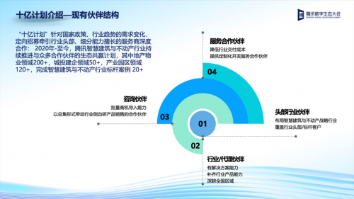 会上,腾讯云智慧建筑与不动产与腾讯云产业生态部联合发布了建筑与不动产合作伙伴计划——“十亿计划”,其将聚焦于地产物业、城投建企、产业园区等领域,围绕泛地产生态,面向ISV 和行业科技、咨询公司及相关运营服务商伙伴,提供专属权益和专业评估定级体系,帮助伙伴实现业务增长,最终实现产品互联,能力互补,商机互通的生态共赢。