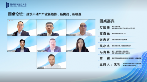 峰会圆桌环节,来自零洞科技、万翼科技、普洛斯、中交一航局、盟浪科技、腾讯云的多位高管和行业专家还展开了深度讨论,就不动产行业当前的发展趋势、业务实践、建企数字化转型经验、智慧园区打造、绿色低碳等话题进行了观点和经验分享。