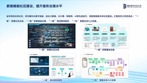 金华金开进一步分享了社区数字化建设方面的实践。经与腾讯云携手,金开数智采用WeSpace智慧空间方案,启动了金华和悦未来社区的数字化建设。目前,该项目已在社区数据集成治理、线上服务门户建设、智慧社区运营、社区社群运营等方面取得了多项实效。未来,金华金开将加快推进社区数字化建设在其他社区的复制落地,全力打造共同富裕美好生活的幸福共同体。