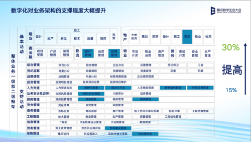 目前,陕建集团已通过腾讯云搭建起了主数据管理平台,实现了各业务信息系统的数据集成治理,并将进一步构建数据湖和大数据分析系统。值得一提的是,其业务数字化成效也在过去一年实现了大幅提升,现已有30%的集团业务实现了信息系统支撑。