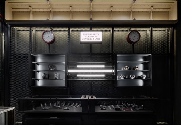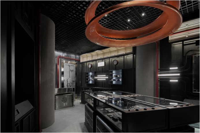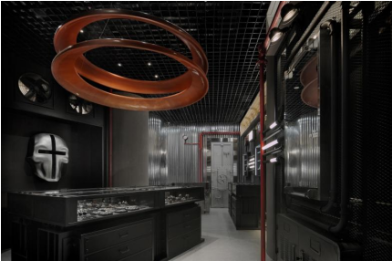 ROCK&RIDE源于美国的高级珠宝品牌,于2022年11月以全新空间形象亮相广州太古汇商场,设计灵感以“装备库”为概念,试图在高度映射品牌理念:“自由灵魂之装备”的同时,忠于产品本身原有的质感和品质。