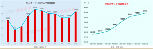 2、深圳二手住宅11月实现网签套数,环比增长23.9%,绝对量(2168套)也创出下半年新高。另一方面,二手房挂牌量也创出新高。
