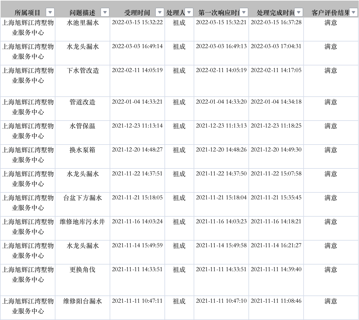 旭辉江湾墅2021-2022期间部分漏水问题的检修工作表