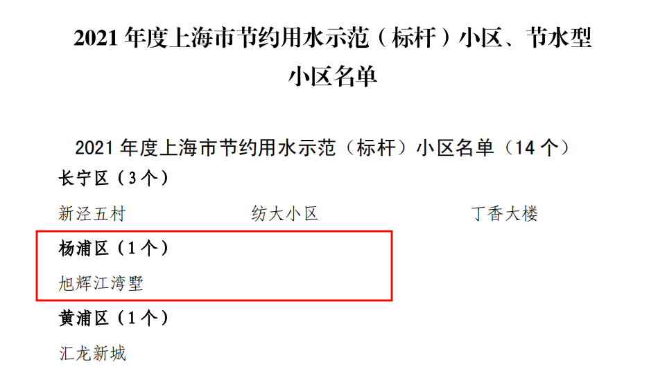 2022年夏季,我国多地遭遇了多年一遇的大范围持续异常高温事件,长江流域遭遇了自1961年以来最严重的气象干旱,出现罕见的“主汛期反枯”,每一滴水的节约都显得异常珍贵。今年8月,上海市水务局、市文明办联合考评后公布14个2021年度上海市节约用水示范(标杆)小区,113个2021年度上海市节水型小区。位于上海杨浦区的旭辉江湾墅小区成为杨浦区唯一一个2021年度上海市节约用水示范(标杆)小区。