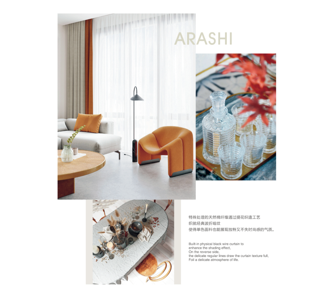 美绮围绕年轻人“简单、个性、品质”的居家生活诉求,以新理念、新场景、新方案为核心,在囊括墙纸、墙布、墙咔三大主流墙面装饰材料后,于2021年8月推出美绮【风影】系列窗帘产品,进一步丰富了产品品类,促进了方案化场景延伸,令单一的产品之间产生设计的化学反应,实现了一步一景的沉浸式呈现。其中拿美绮最新发布的窗帘新品「风影」04来说,面料上选择生产婴幼儿服装的A类面料,该产品甲醛含量、PH值、色牢度等均达到A级母婴标准,同时柔软的亲肤棉材质细腻透气,触手生温,保暖性与亲肤性兼具,在场景显现上,柔和简洁的配色让居住体验感更加舒适自在。