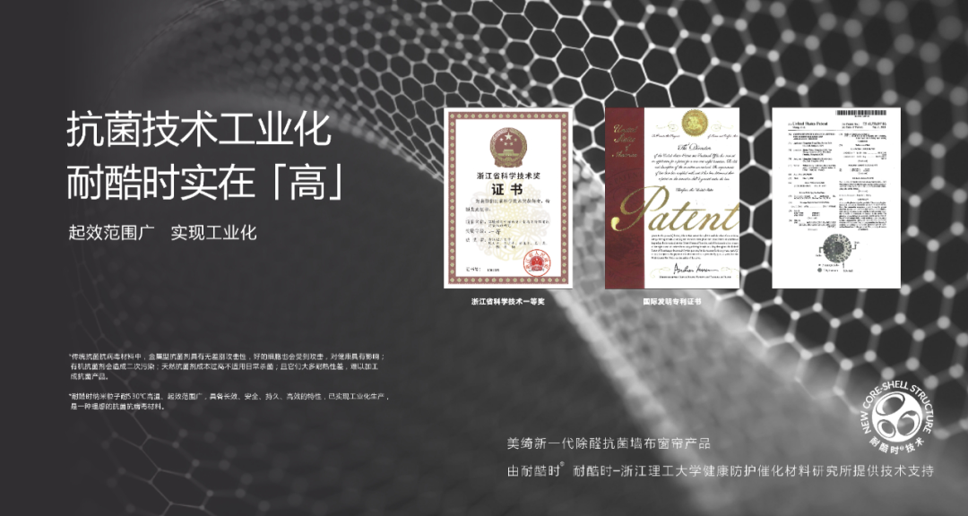 美绮始终将绿色、安全、环保和健康作为品牌发展的核心,并基于广泛调研与需求解读,持续大力度推荐技术革新与产品研发。今年3月,耐酷时墙布窗帘系列产品的推出,意味着美绮开启全屋净化健康家居新时代。耐酷时技术与市场上其他如银离子、季铵盐等金属抗菌剂和有机抗菌剂不同之处在于,耐酷时纳米粒子化学性能稳定,属非离子型,非溶出型材料,是一种高效、安全的环境友好型环境净化技术,且对室内空气质量的改善已得到国际学术界的认可,并获得数项国际认证证书。同时,与传统除醛净化技术相比较,美绮新产品所采用的耐酷时光触媒粒子技术,可快速清除装修甲醛、TVOC等有害气体,并具备杀菌、除味等多种净化功能。如此强大的实力,可以称得上是家中“健康卫士”,消灭隐患于无形。