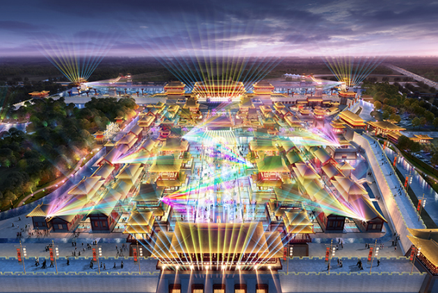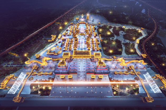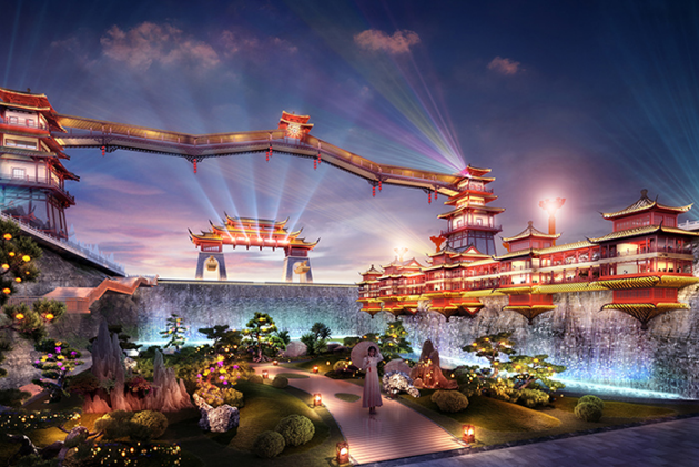 项目整体占地约两千多亩,主要包含汉风广场、城市规划展览馆、永城非物质文化展示体验中心、汉文化风情商业街、汉乐府、生态公园、欢乐谷、高效观光农业、教育综合体、安置用房等工程。项目一期是复原汉代建筑群为基础,植入科技亮化技术来打造,让每个进入其中的游人能够成为我们项目的一部分。身处其中或神游入汉世九州,或携凤游于仙阁,或居于学府修习“六艺”,或携剑而出护卫“汉世之昌盛”,或正理而行亲临“朝堂之风云”。