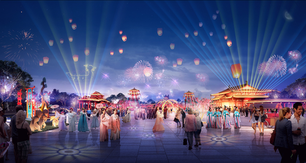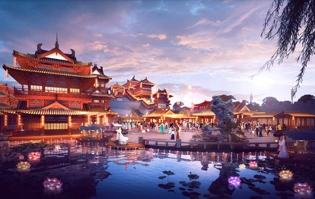 设计师:我们依借“汉代文化”“儒家文化”为基础,创造不同的产业IP,围绕生态产业、文旅产业、康养产业、度假产业,打造出了如倬彼云汉、画舫烟云、汉风栾巢、汉风商业街、宫宴、夫子学宫、宫廷风云系列表演、书画街区等众多项目,通过“文化+品牌+表演+体验”的手段提升项目深度,使其能够贴合“汉代穿越”主题,为游人带来更为沉浸式的体验。