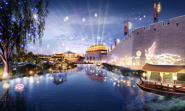 于城墙之上可以漫步眺望远方体验汉时光景,于城墙之内有特色商业、于城墙之边打造独具特色的茶馆、书店、主题民宿等,同时利用城墙、城楼、护城河做大型水上攻城实景演出,城墙之上还设有VR投影主题灯光秀等,为民众呈现一场极致的视听盛宴,并根据不同的节日更换主题,让市民感受大汉文明的深厚魅力,领略大汉王城的盛世繁华。