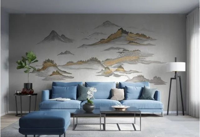 领绣墙布:水岸沧清