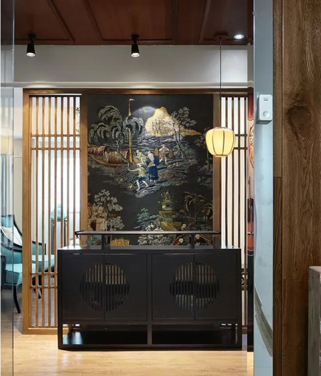 领绣墙布:高堂茶实