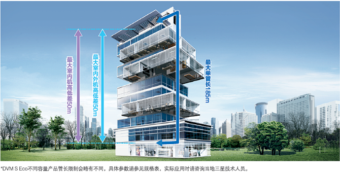 管长自由度高,灵活对应多样的楼体设计,在安装上,同样可以满足不同需求。三星侧出风变频多联机管长自由度高,管长衰减小,使用户不必多虑室外机摆放问题,减少家居设计的拘束感,使户型设计便捷回归使用需求。