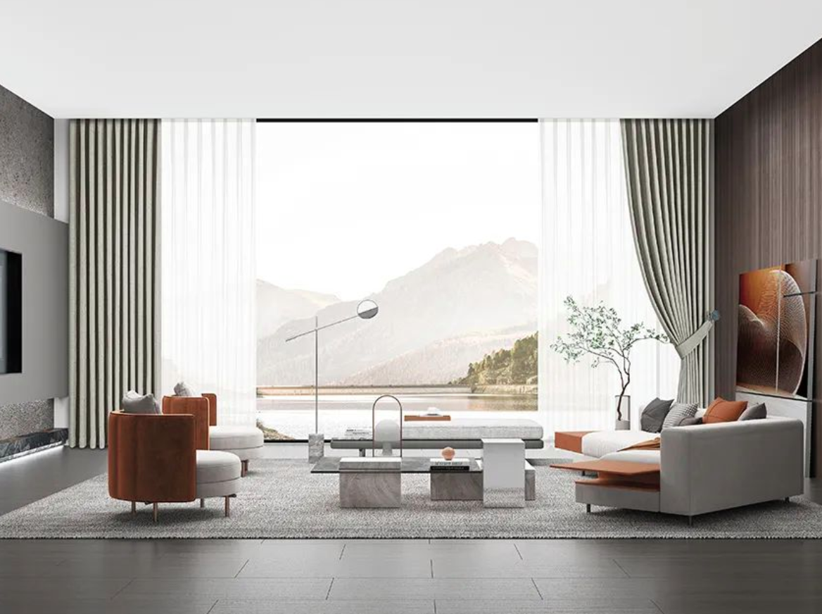 尤其是当下,物质条件极大丰富之下,面对产品品质虽有了基本保障却陷入了同质化竞争的市场环境,美绮软装以消费者为中心,在产品表达上,不论是功能价值,还是情感价值、或是彰显价值或象征价值,极尽可能的满足消费者从产中获取的价值感。在窗帘新品「风影」04 中,美绮软装用不同材质与颜色呼应空间的舒适,从色彩视觉上去区分空间的应用。当窗帘与墙面、地毯或装饰画有了细微色差后,增加了空间层次感和通透感,令空间变得更为柔和,给一个家庭带去健康、舒适、放松的生活环境。