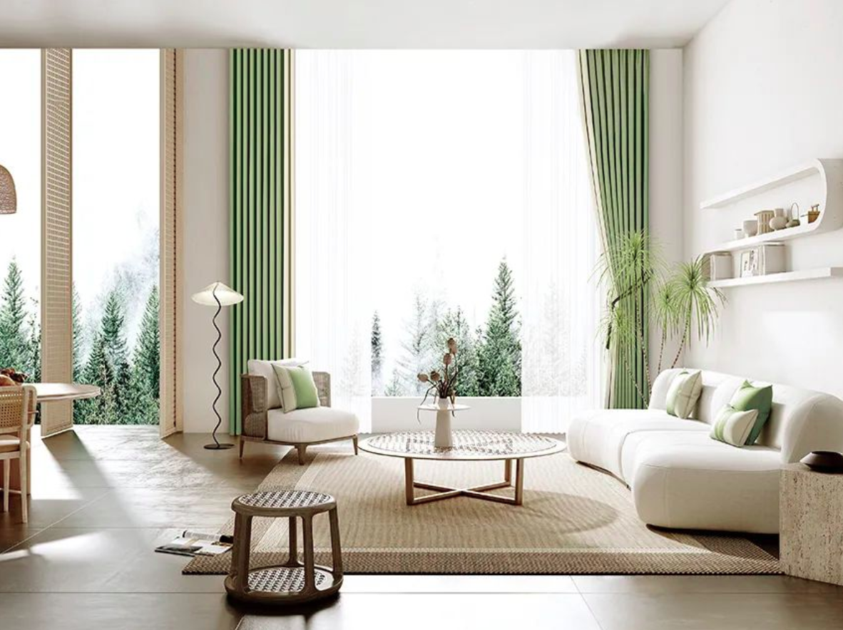 尤其是当下,物质条件极大丰富之下,面对产品品质虽有了基本保障却陷入了同质化竞争的市场环境,美绮软装以消费者为中心,在产品表达上,不论是功能价值,还是情感价值、或是彰显价值或象征价值,极尽可能的满足消费者从产中获取的价值感。在窗帘新品「风影」04 中,美绮软装用不同材质与颜色呼应空间的舒适,从色彩视觉上去区分空间的应用。当窗帘与墙面、地毯或装饰画有了细微色差后,增加了空间层次感和通透感,令空间变得更为柔和,给一个家庭带去健康、舒适、放松的生活环境。