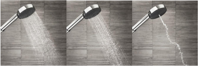 (从左至右)PowderRain沄雨式、Intense PowderRain强劲沄雨式、按摩式
