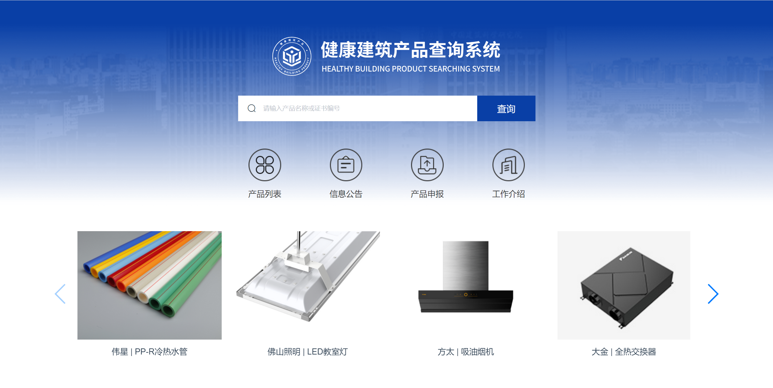 所有获得“健康建筑产品标识”的产品都将在“健康建筑产品查询系统”上公开展示,公众可通过输入证书编号、品牌名称等方式查询已经获得标识的产品,也可通过“中国健康建筑网”、“健康建筑标识网”查看已经获得健康建筑产品标识的产品。