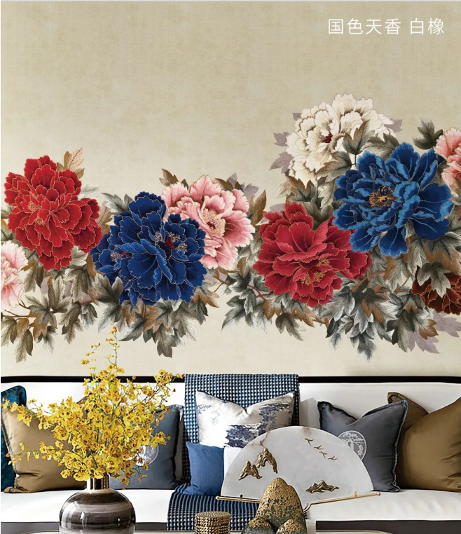 领绣刺绣墙布深厚的文化底蕴,精妙的刺绣设计,可以丰富家居风格的历史内涵,带来独一无二的华贵质感。以领绣刺绣墙布《国色天香》为例,绵密的针法勾勒出逼真的图案,花色娇艳欲滴,图案花团锦簇,好似家里后花园里现摘的牡丹,针线的变化又如花朵的有形。让人不由自主地感叹,这不只是墙布,更是贴于墙上的艺术品。