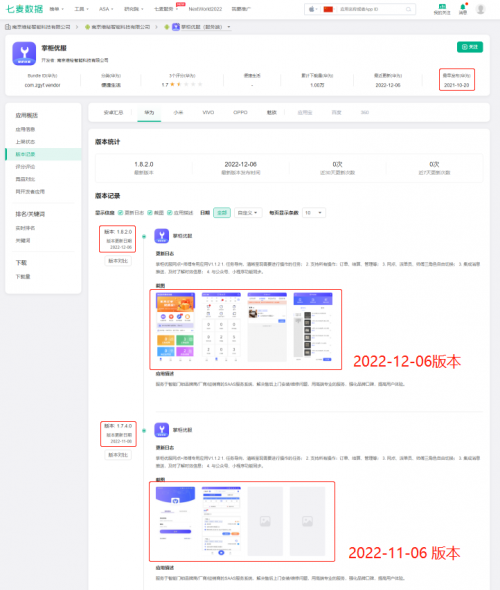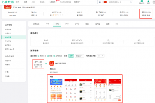 为此,我们通过七麦公开的历史数据进行对比,我们发现鲁班到家师傅版APP最早发布(小米)于2016年12月9日,截止发稿,版本更新历史记44次。