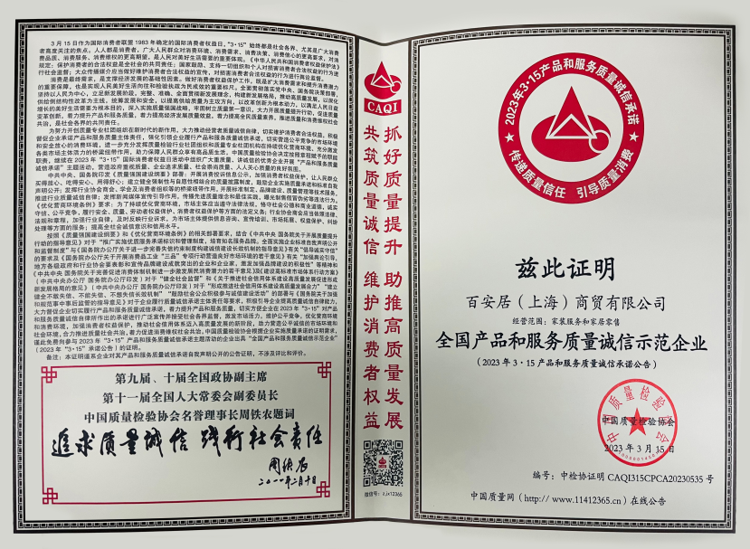 中国质量检验协会自2000年起,就持续携手各行业质量领先品牌,在“3·15”国际消费者权益日期间组织开展“产品和服务质量诚信承诺”主题活动,推动企业质量诚信自律,切实维护消费者权益。多年来,百安居秉承品质至上、服务至上、诚信经营的价值理念,积极助推质量强国战略,以质量放心赢得消费者放心。此次凭借良好口碑及品质形象,在2000多家优秀参与企业中脱颖而出,获得了权威机构的高度认可。