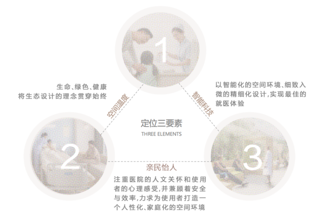 室内设计以园中之境,诠释人文、自然与温度相结合的医疗空间。项目整体分为四层,兼顾中医、康复、检测、诊疗等功能,打造特色的功能空间组合,满足康、疗、医相结合的需求。首层设置体验展示空间、诊室、检测和药房等功能;二层设置诊室、康复中心、病房、休闲区等功能,三、四层打造病房和办公区。