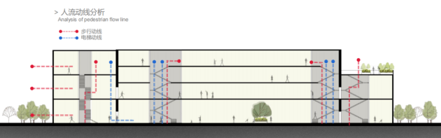 本项目以工业用地保留原有建筑,改建成医疗康养和社区空间,功能包括门诊、医技、体检中心、产后康复治疗、社区卫生站、养老中心等。设计通过加建天桥环廊,重构空间秩序,统领三大区域;通过人车分流、水平交通体系、步行康复运动、立体绿化,构建二层空中生态步道系统,从而形成整体有序、活力、互联、生机的有机空间和生态社区。