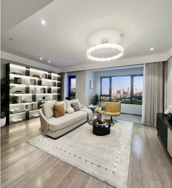 除了恒温,中绿东岳府还可保持30%-60%的恒湿,同时,通过分户式高效新风和空气质量监测,把空气中的粉尘、花粉、柳絮等颗粒物过滤掉,对PM2.5净化效率达到≥95%,让室内CO2浓度≤1000ppm,居住者可以24小时呼吸新鲜空气。此外,德国旭格三层双中空Low-E玻璃的超低能耗外窗,可以完全隔离30-45分贝以下的噪音,而良好的气密性可确保室内保持清洁无尘、不结露、不返潮的恒洁状态。