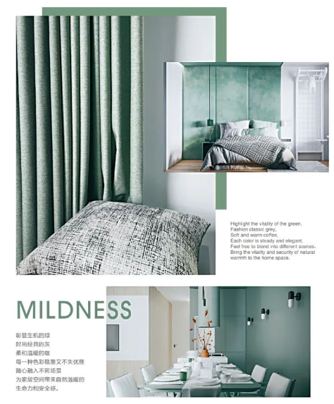面对市场新趋势,美绮软装精雕细琢原创设计,以新产品、新设计诠释当代潮流生活,打造全品类墙饰+原创+软装的一体化服务路径,提供整体家居生活空间解决方案。2022年,基于消费升级和市场变化,美绮推出以窗帘「风影」04等为代表的新品系列,满足主流消费群体的需求。其中,「几何」采用经典的规则几何纹肌理,简约又不乏设计感,低饱和度色彩营造出空间的舒适感,让整个家看起来更高级;「暖阳」中混纺低饱和度的色彩高级舒适,叠加羊绒尼材质,还原时间沉淀下的原生美感。