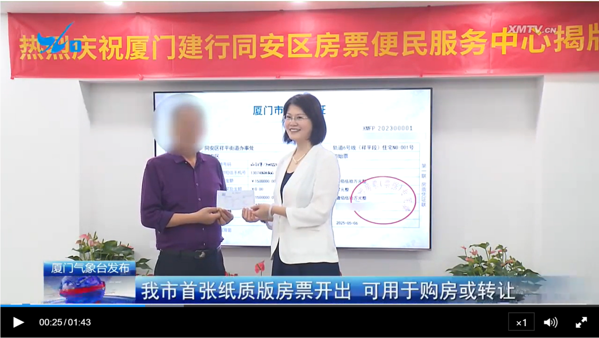 5月7日,厦门开出首张纸质房票及首张转让房票