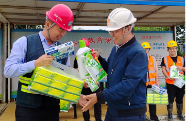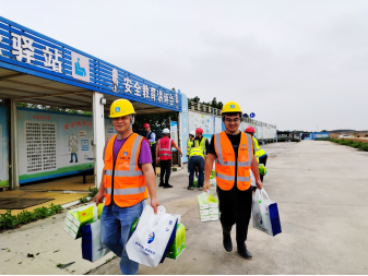 华南投资公司领导对参与建设的总承包单位管理人员和民工兄弟的辛勤付出给与肯定,为他们发放了洗护用品、纸巾等慰问品。项目建设取得的可喜成绩离不开大家的共同努力和辛勤付出,希望今后能继续发扬吃苦耐劳、敢打硬仗、奋力拼搏的优良作风,注重安全生产,保质保量的完成各项建设任务。