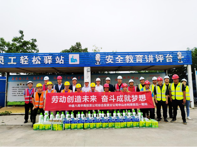 近日,由中建八局华南投资公司投资、建设、运营的中山市翠亨新区滨河整治水利项目举办“劳动创造未来 奋斗成就梦想”职工慰问活动。华南投资公司相关领导人员参与现场活动,对总承包单位管理人员和民工兄弟进行慰问。