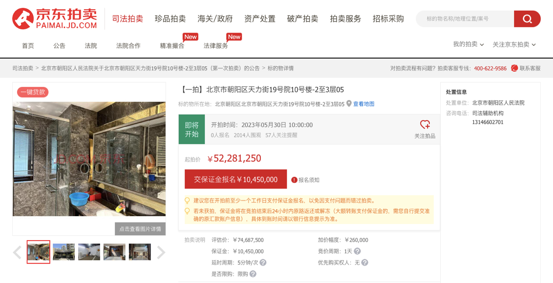 而除了李厚霖的这一处房产拍卖引发关注,作为该标的的线上处置平台,京东拍卖近期也是频频被提及。5月9日,北京顶级豪宅万柳书院75套房源债权被挂上京东拍卖的消息登上了多个平台的热搜。此外,京东拍卖即将在5月18日举办的“互联网资产处置峰会”的消息也在行业内扩散开来,据透露,现场将有多家金融机构带来资产约70亿的破产车企、资产超20亿的九江国际金融广场各类优质标的进行推介,在经济复苏提速的当下,能够一次性获取超多投资项目信息、并与金融机构深度洽谈的机会,也是吸引了众多投资人和行业人士的共同关注。